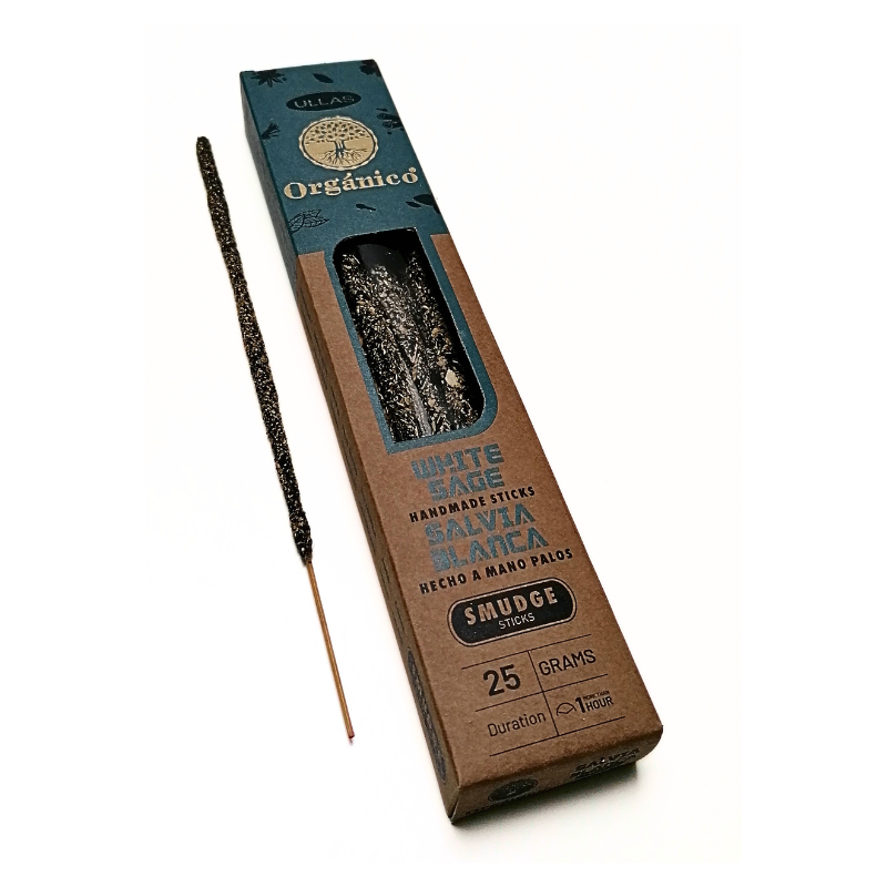 Bețișoare Parfumate ULLAS Organic Salvie Albă (25g) Handmade, Ardere 1 Oră