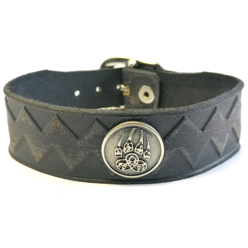 Brățară din piele cu model de Giara de Urs — un simbol al puterii, protecției și înțelepciunii ancestrale. În tradițiile străvechi, giara de urs reprezenta legătura profundă dintre om și natura sălbatică. Ursul, cunoscut ca un animal sacru și protector, este adesea asociat cu forța interioară, curajul și renașterea.