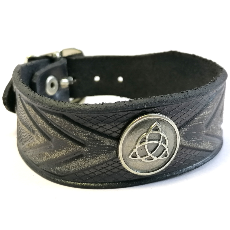Adaugă un plus de stil autentic și personalitate ținutelor tale cu această brățară din piele naturală, lucrată manual în Ecuador. Designul său tribal, însoțit de un element metalic ce înfățișează o Triqueta celtică este un simbol străvechi al echilibrului și eternității.