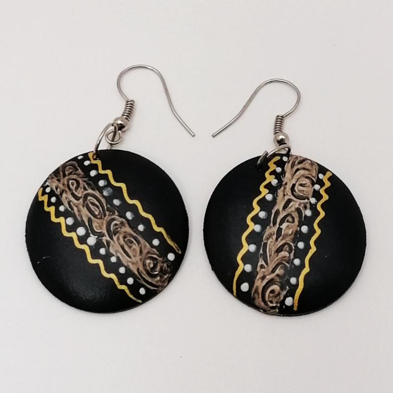 Lemn ușor și tratat, de obicei cu margini rotunjite pentru confort, pictură realizată manual, utilizând culori rezistente la uzură și luciu protector. Acești cercei din lemn natural impresionează prin simplitatea și eleganța lor rustică. Fiecare pereche este realizată manual, din lemn de înaltă calitate, oferind un aspect unic și autentic.