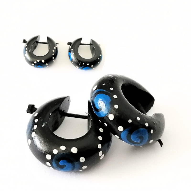 Cercei tribal pentru băieți din lemn natural, model etnic lucrat manual. Ușori, confortabili și ideali pentru stiluri alternative. Nu se recomandă persoanelor alergice.