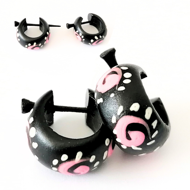 Cercei tribal pentru băieți din lemn natural, model etnic lucrat manual. Ușori, confortabili și ideali pentru stiluri alternative. Nu se recomandă persoanelor alergice.