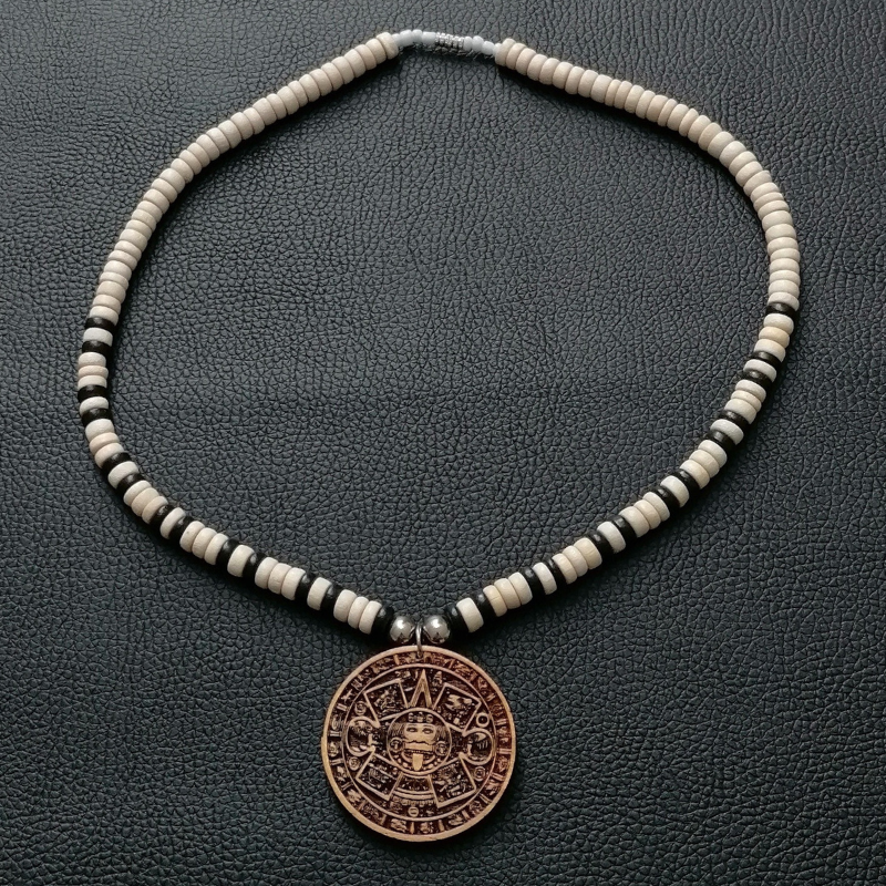 În centrul colierului se află un pandantiv decorativ, cu modele tribale simbolice, asociate cu norocul și protecția spirituală. Designul neutru și natural permite purtarea acestuia atât de femei, cât și de bărbați, fiind ușor de integrat în orice ținută casual sau cu accente etnice.
