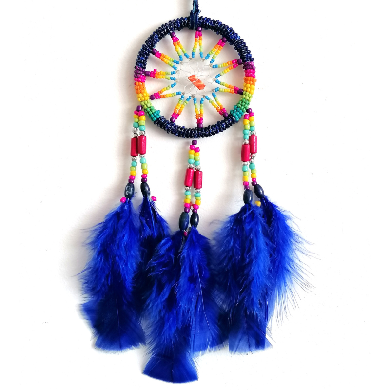 Cu o lungime totală de aproximativ 25 cm, acest dream catcher este suficient de compact pentru a fi agățat de oglinda retrovizoare a mașinii, în dormitor, pe perete sau la fereastră. Culorile vii și aranjamentul mărgelelor atrag atenția, iar fiecare piesă este unică, datorită lucrului manual.
